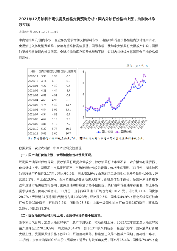 【中商产业研究院】【202112】2021年12月油料市场供需及价格走势预测分析-2页