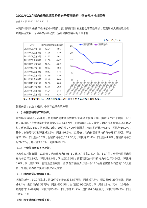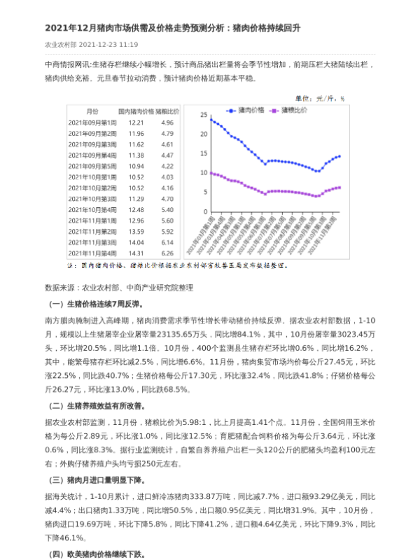 【中商产业研究院】【20211223】2021年12月猪肉市场供需及价格走势预测分析-2页