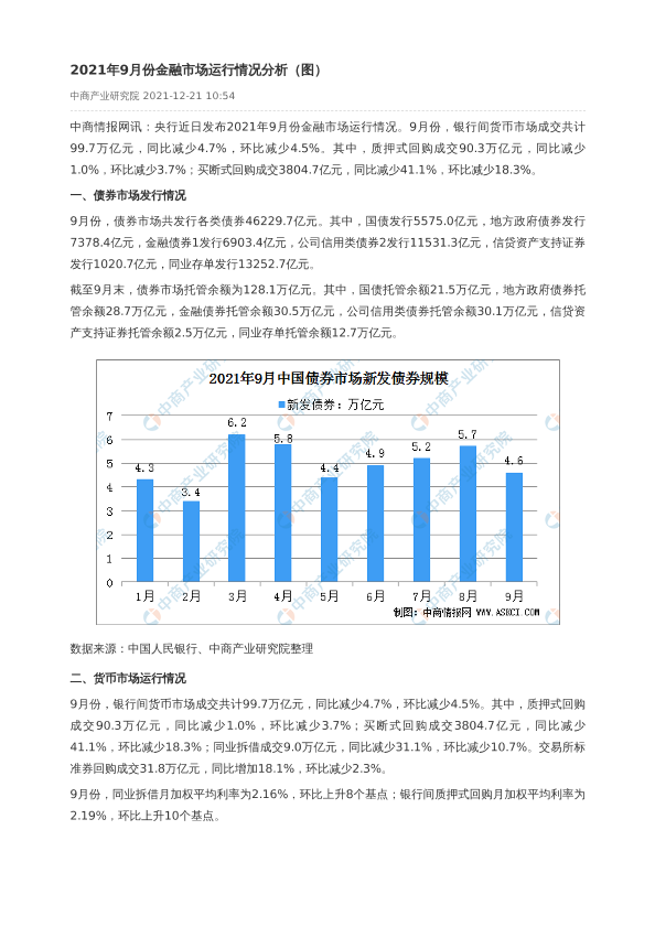【中商产业研究院】【2021】2021年9月份金融市场运行情况分析-3页