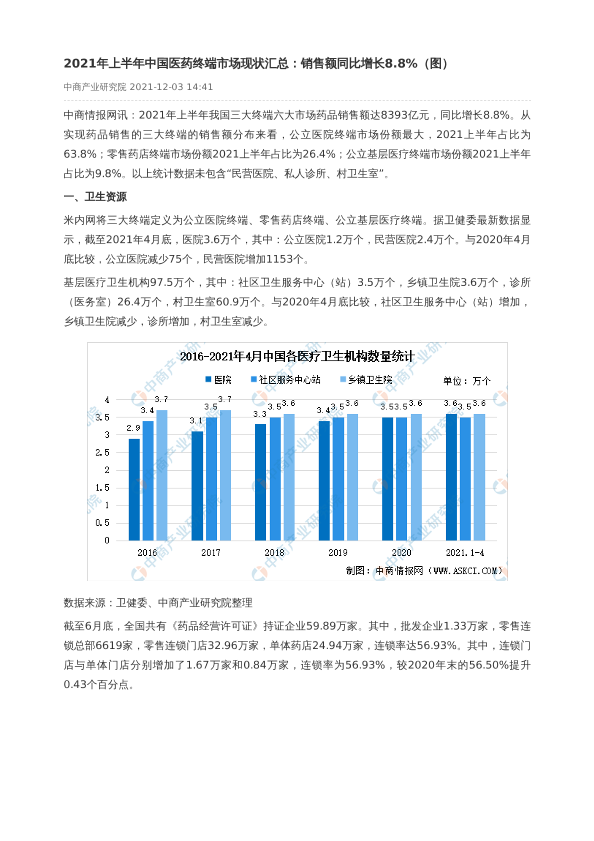 【中商产业研究院】【20211203】2021年上半年中国医药终端市场现状汇总-7页