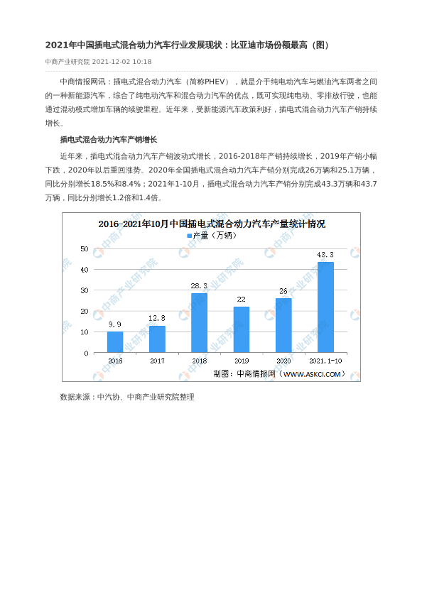 【中商产业研究院】【20211202】2021年中国插电式混合动力汽车行业发展现状:比亚迪市场份额最高(图)-3页