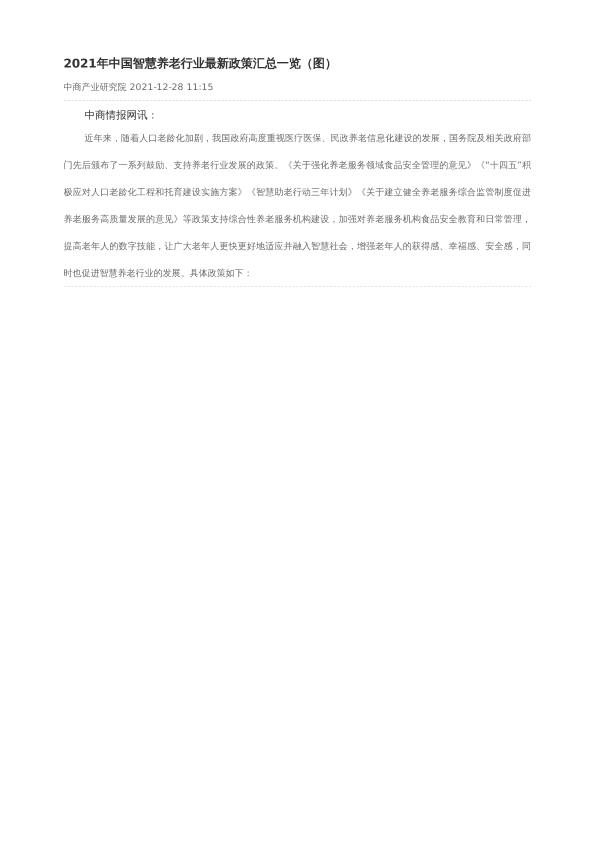 【中商产业研究院】【20211228】2021年中国智慧养老行业最新政策汇总一览(图)-4页