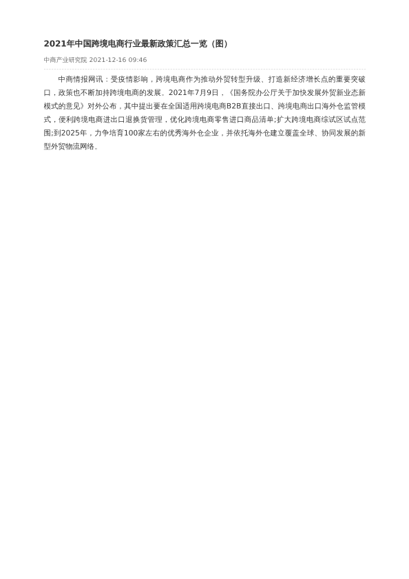 【中商产业研究院】【20211216】2021年中国跨境电商行业最新政策汇总一览(图)-3页