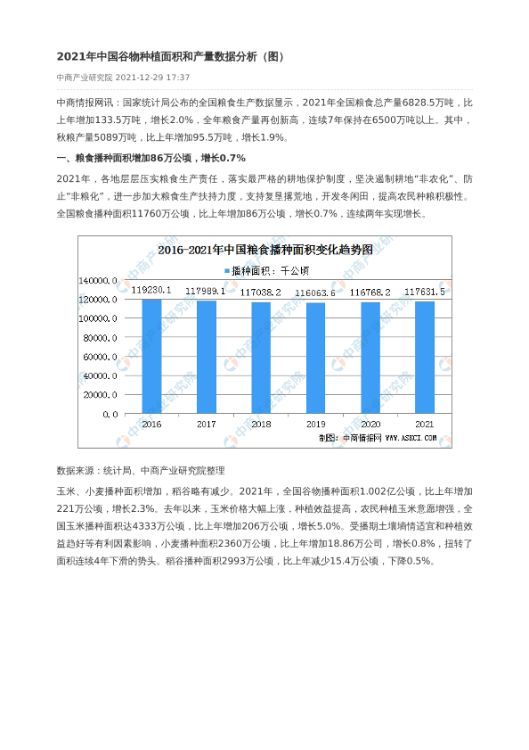 【中商产业研究院】【20211229】2021年中国谷物种植面积和产量数据分析(图)-4页