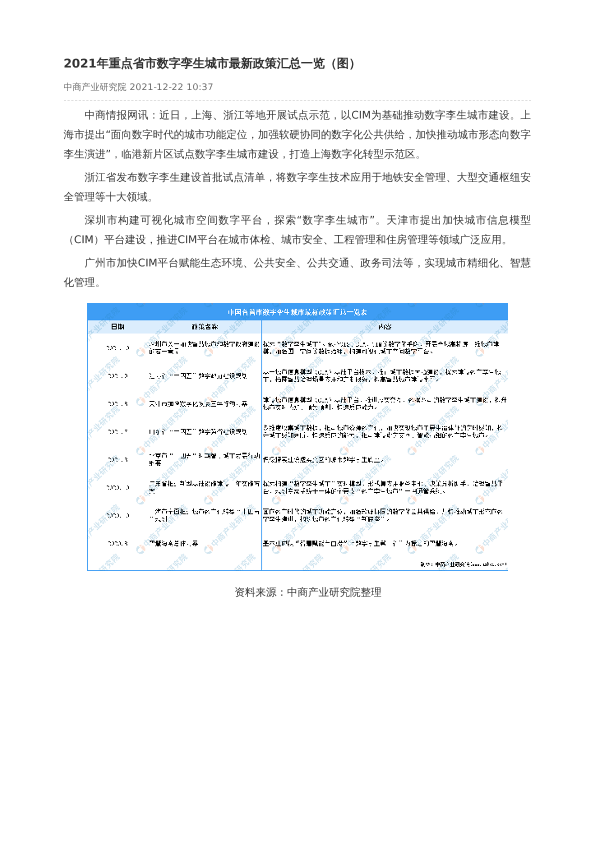 【中商产业研究院】【20211222】2021年重点省市数字孪生城市最新政策汇总一览(图)-1页