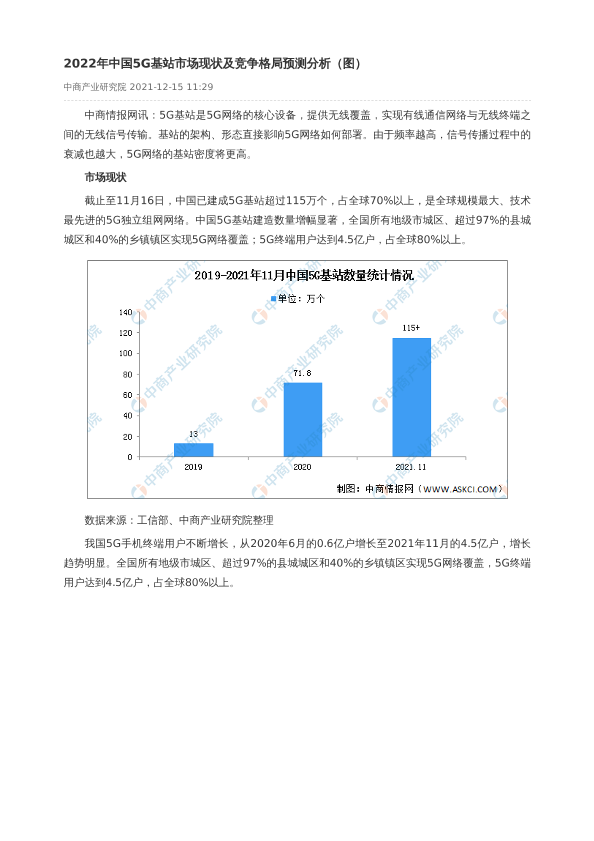 【中商产业研究院】【2022】2022年中国5G基站市场现状及竞争格局预测分析-2页