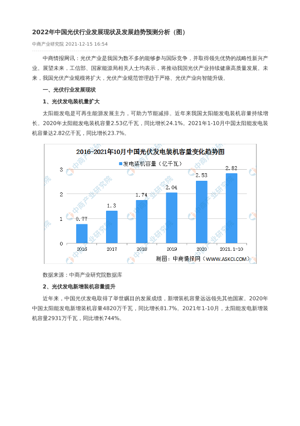 【中商产业研究院】【20211215】2022年中国光伏行业发展现状及发展趋势预测分析-4页