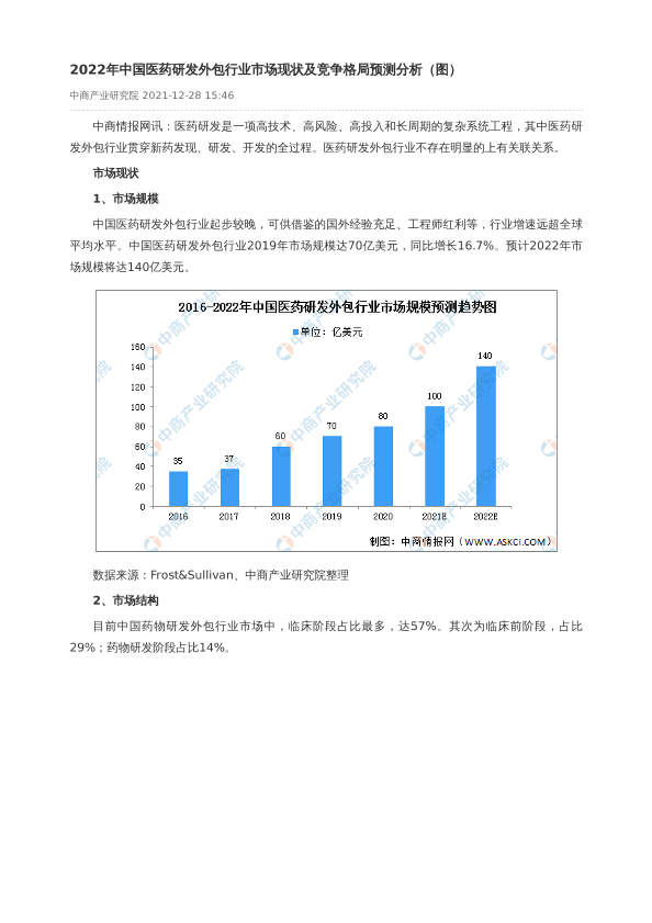 【中商产业研究院】【2022】2022年中国医药研发外包行业市场现状及竞争格局预测分析-2页