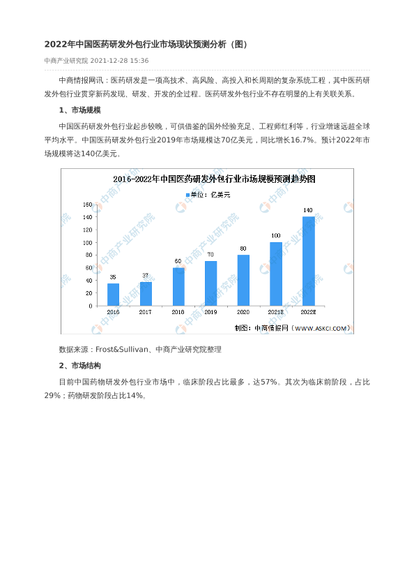 【中商产业研究院】【2022】2022年中国医药研发外包行业市场现状预测分析-2页