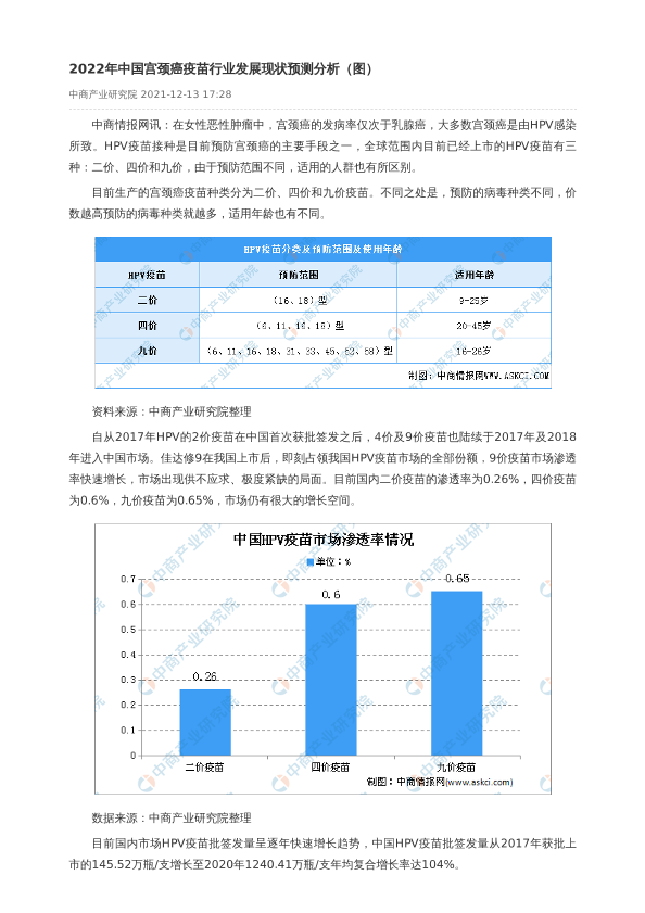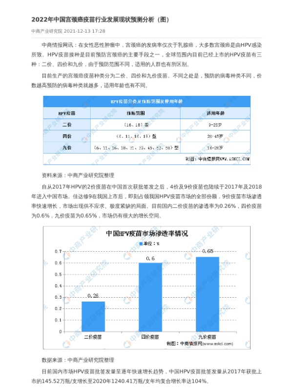 【中商产业研究院】【2022】2022年中国宫颈癌疫苗行业发展现状预测分析-2页