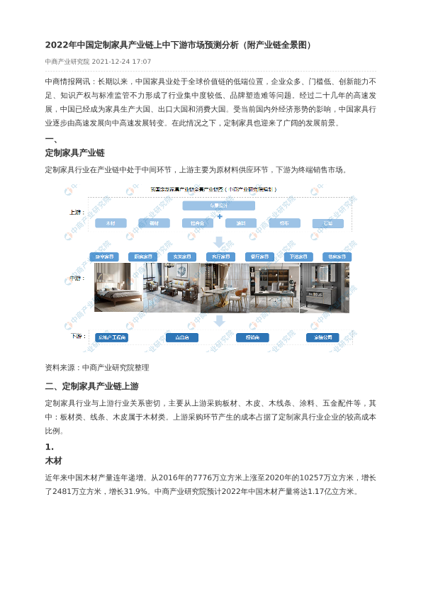 【中商产业研究院】【20211224】2022年中国定制家具产业链上中下游市场预测分析(附产业链全景图)-14页