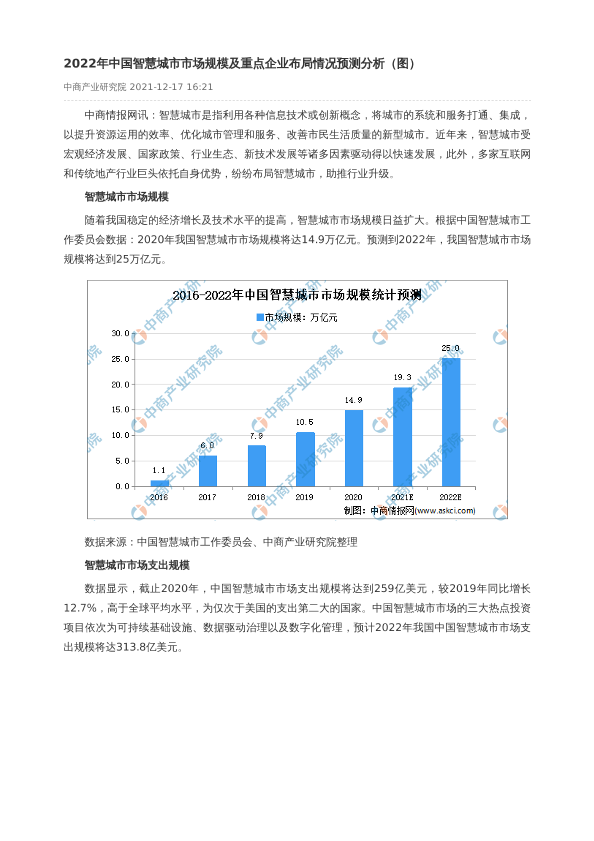 【中商产业研究院】【2022】2022年中国智慧城市市场规模及重点企业布局情况预测分析-3页