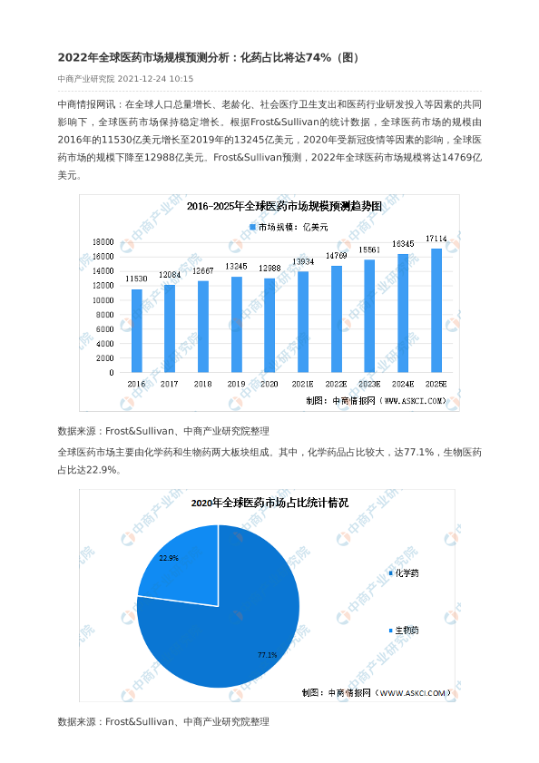 【中商产业研究院】【2022】2022年全球医药市场规模预测分析:化药占比将达74%-2页