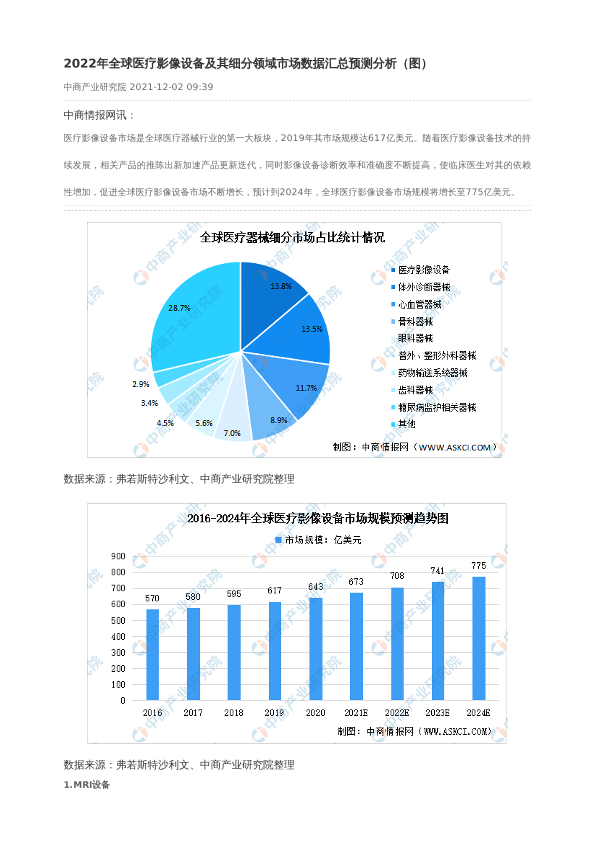 【中商产业研究院】【20211202】2022年全球医疗影像设备及其细分领域市场数据汇总预测分析-3页