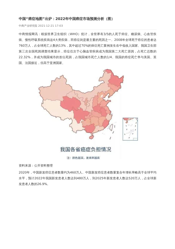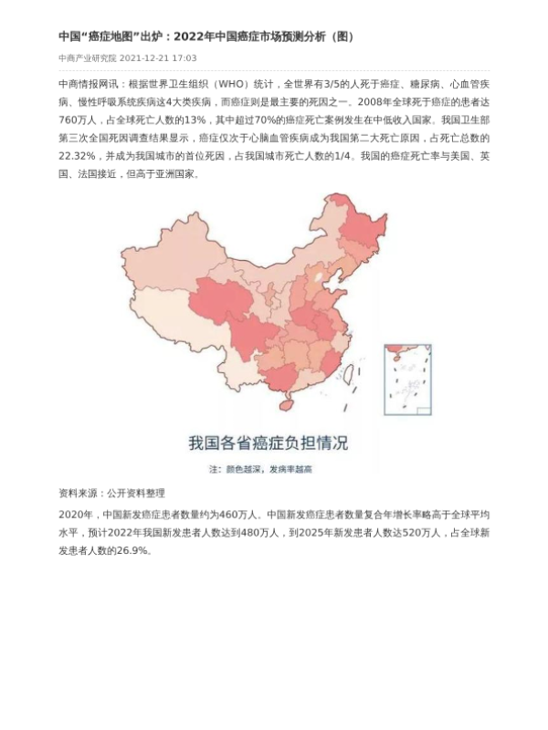 【中商产业研究院】【20211221】中国“癌症地图”出炉:2022年中国癌症市场预测分析(图)-4页