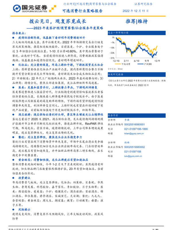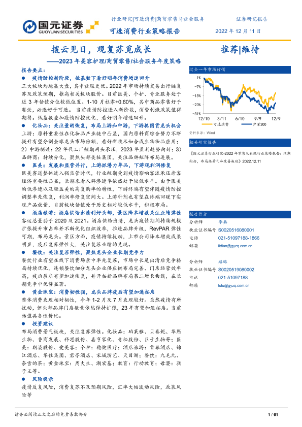 【国元证券】【20221211】可选消费行业2023年美容护理商贸零售社会服务年度策略:拨云见日,观复苏觅成长-61页