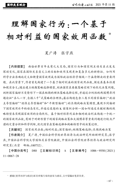 【中国社科院】【2021】理解国家行为:一个基于相对利益的国家效用函数-28页