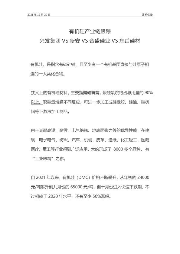 【优塾】【20211220】有机硅产业链跟踪:兴发集团VS新安VS合盛硅业绩VS东岳硅材-32页