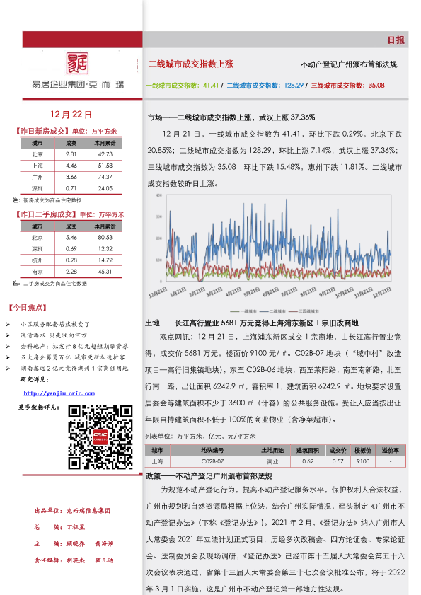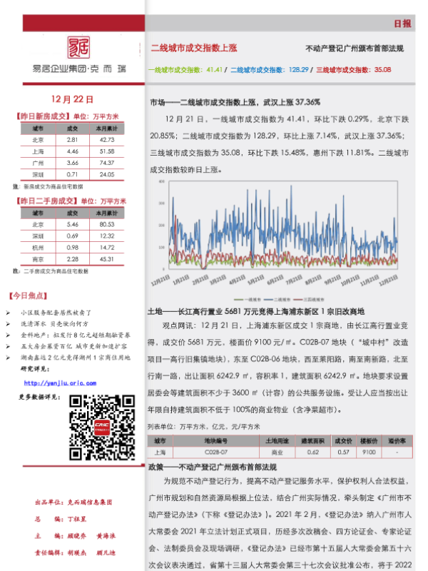 【克而瑞研究中心】【20211222】市场日报12.22-二线城市成交指数上涨,不动产登记广州颁布首部法规-5页