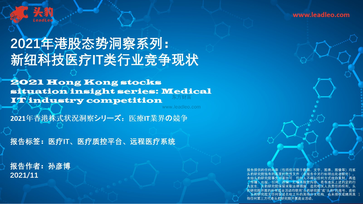 【头豹研究院】【202111】2021年港股态势洞察系列:新纽科技医疗IT类行业竞争现状-30页