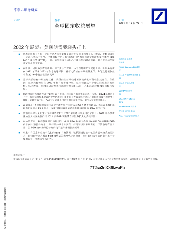 【德银】【20211222】全球投资策略2022年展望:美联储需要迎头赶上-87页