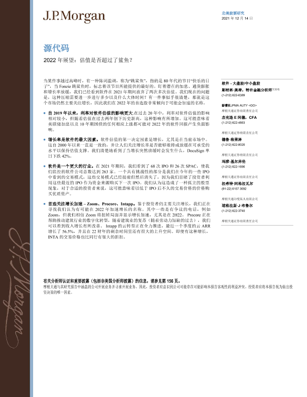 【J.P. Morgan】【20211214】美股软件行业2022年前景:估值是否已经跳涨-170页