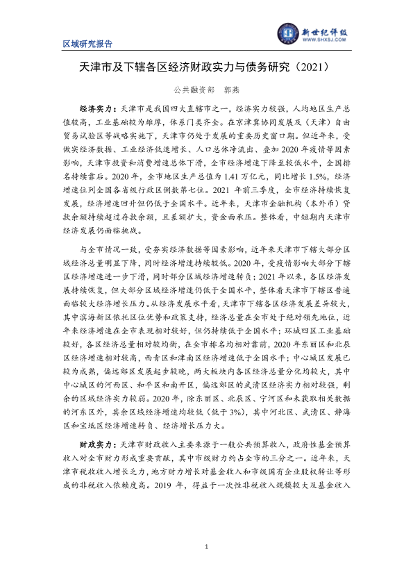 【新世纪评级】【2021】天津市及下辖各区经济财政实力与债务研究-30页