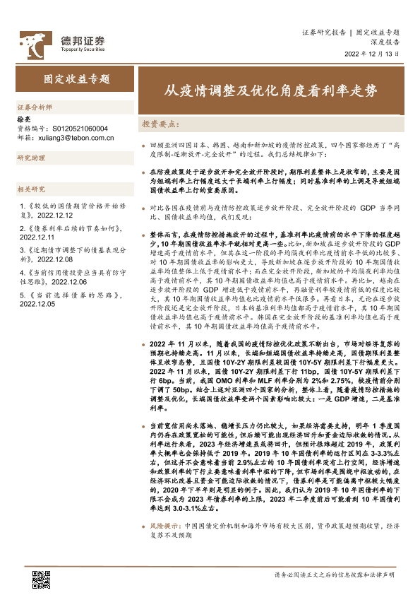 【德邦证券】【20221213】固定收益专题:从疫情调整及优化角度看利率走势-21页
