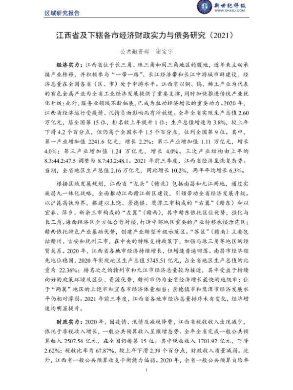 【新世纪评级】【2021】江西省及下辖各市经济财政实力与债务研究-26页
