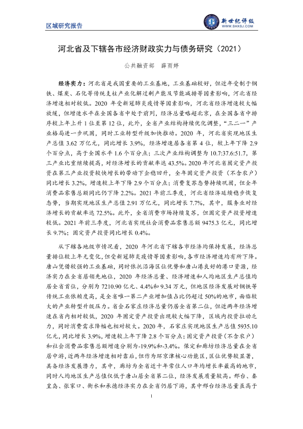 【新世纪评级】【2021】河北省及下辖各市经济财政实力与债务研究-24页