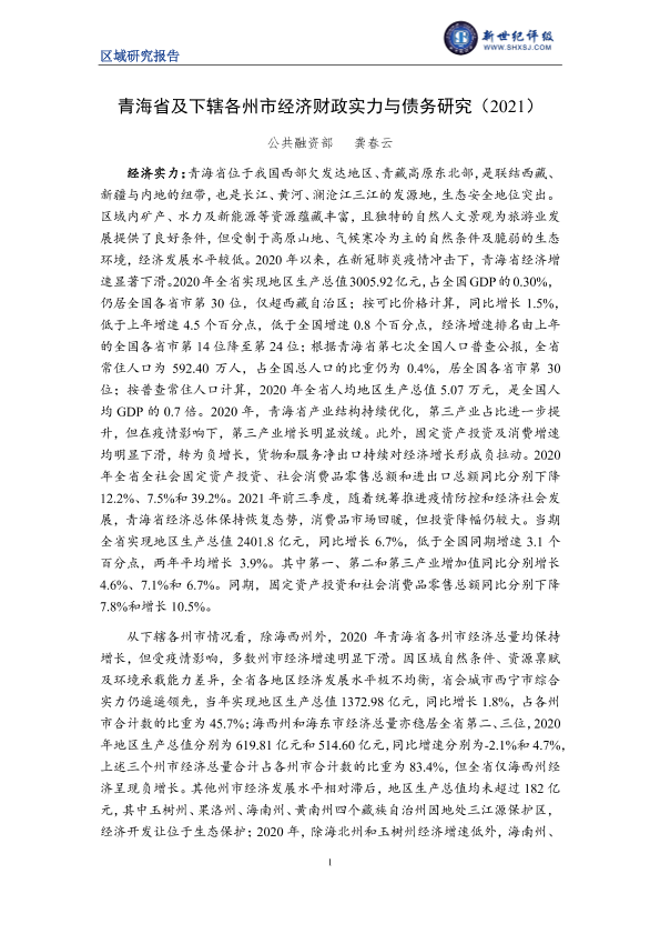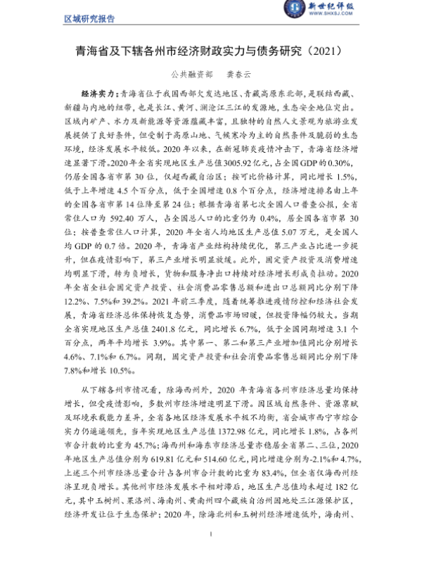 【新世纪评级】【2021】青海省及下辖各州市经济财政实力与债务研究-28页