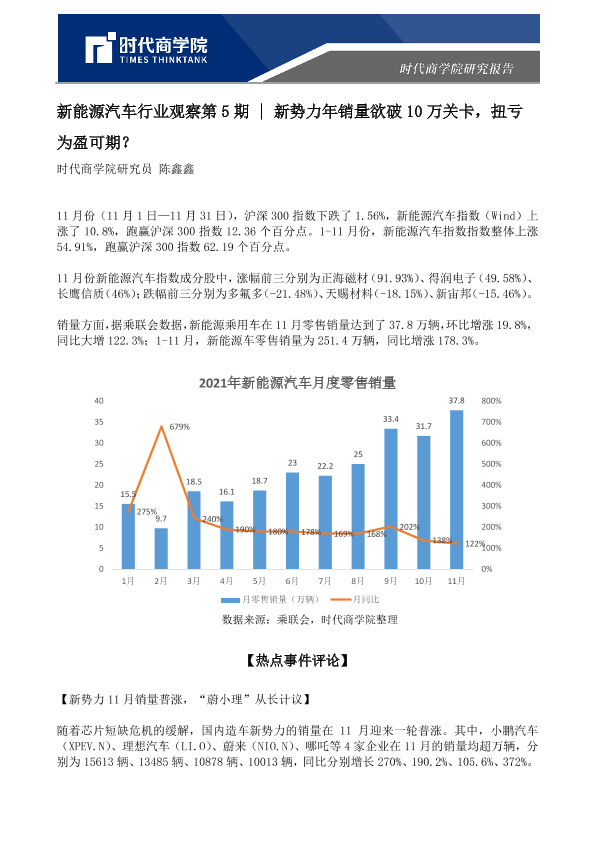 【时代商学院】【2021】新能源汽车行业观察第5期:新势力年销量欲破10万关卡,扭亏为盈可期?-6页