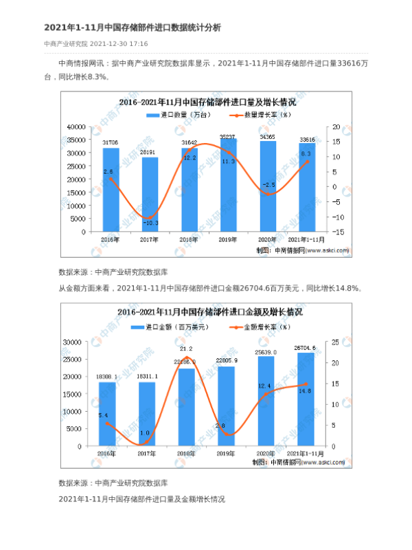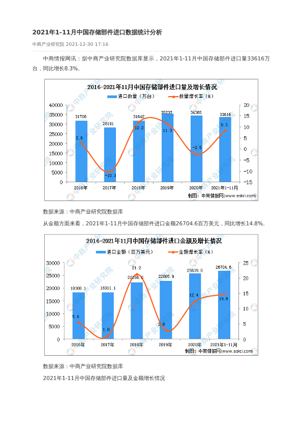 【中商产业研究院】【2021】2021年1-11月中国存储部件进口数据统计分析-2页