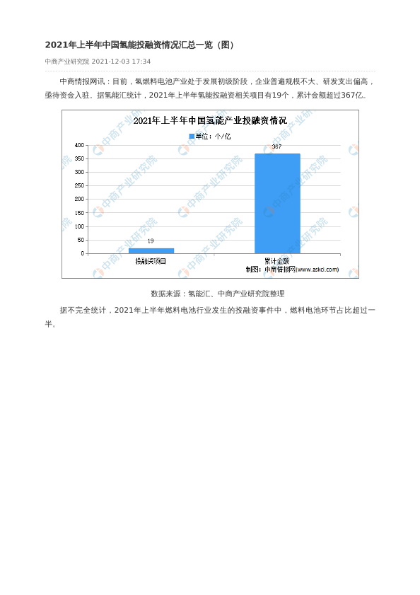 【中商产业研究院】【20211203】2021年上半年中国氢能投融资情况汇总一览(图)-2页