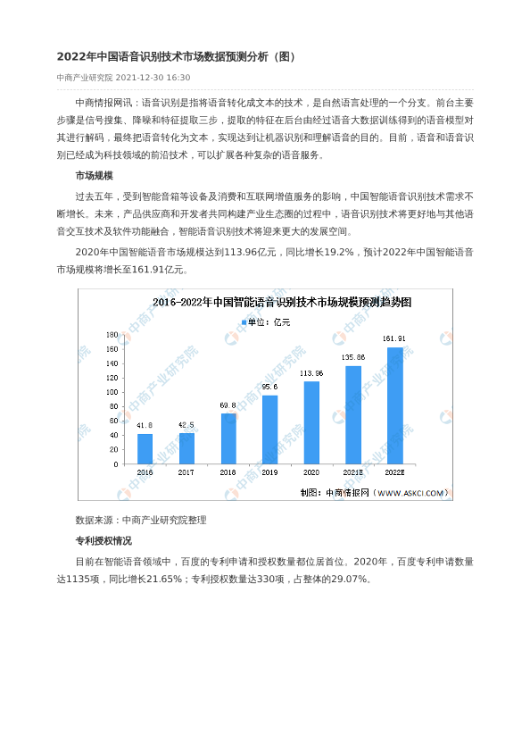 【中商产业研究院】【2022】2022年中国语音识别技术市场数据预测分析-2页