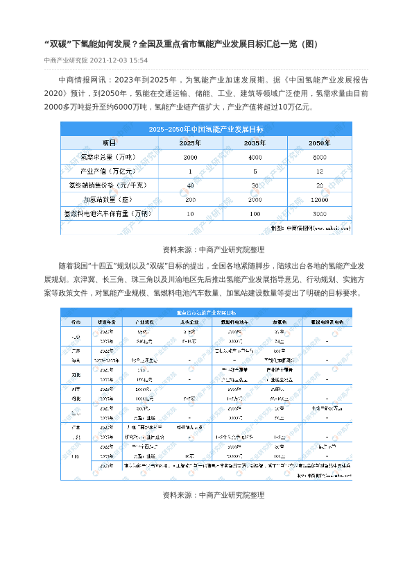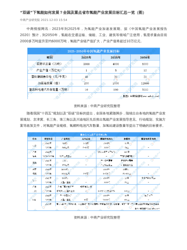 【中商产业研究院】【20211203】“双碳”下氢能如何发展?全国及重点省市氢能产业发展目标汇总一览(图)-1页