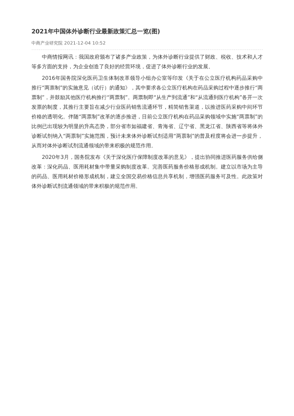 【中商产业研究院】【20211204】2021年中国体外诊断行业最新政策汇总一览-2页
