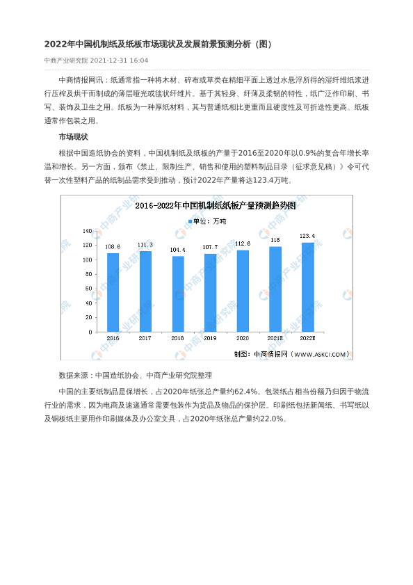 【中商产业研究院】【2022】2022年中国机制纸及纸板市场现状及发展前景预测分析-3页