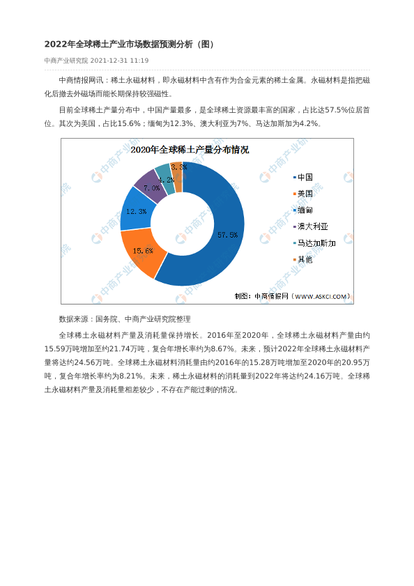 【中商产业研究院】【20211231】2022年全球稀土产业市场数据预测分析-2页