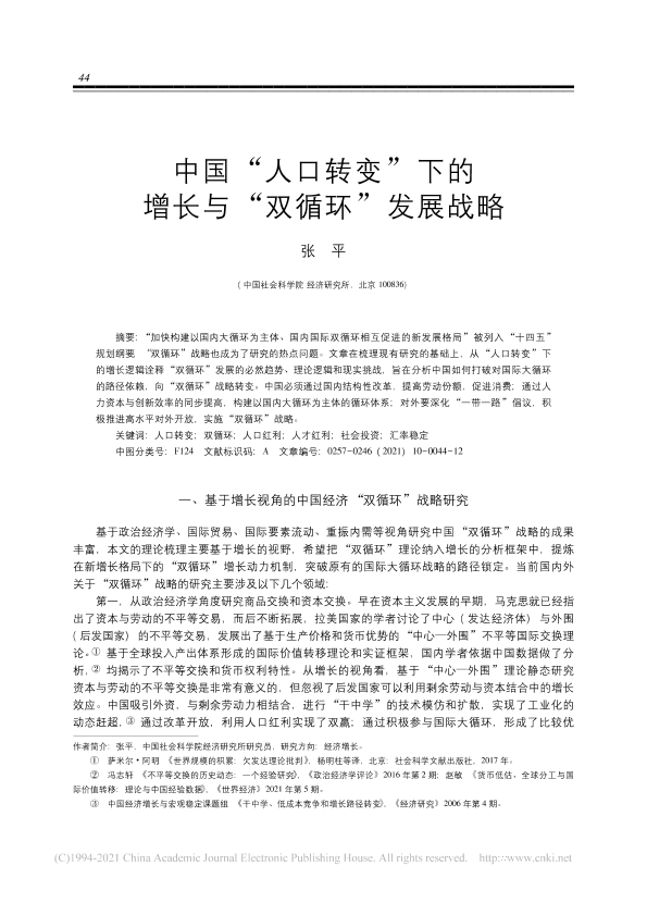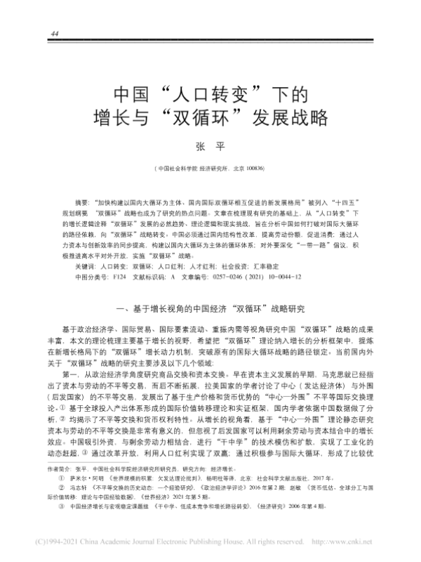 人口转变 双循环 国际贸易 政策分析 经济增长