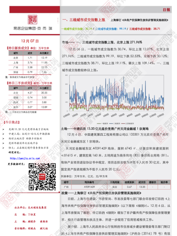 【克而瑞研究中心】【20211207】市场日报(1207):一、三线城市成交指数上涨-5页