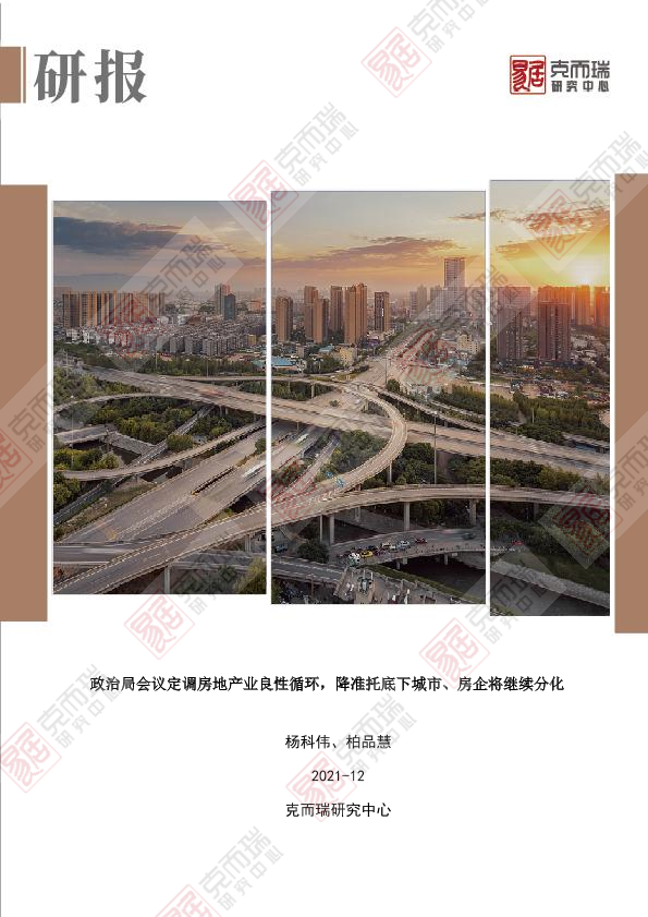 【克而瑞研究中心】【202112】政治局会议定调房地产业良性循环,降准托底下城市、房企将继续分化-3页