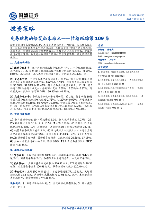 【国盛证券】【20210825】情绪跟踪第109期:交易结构的修复尚未结束-15页
