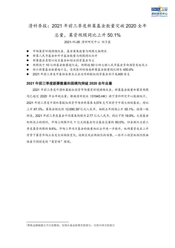 【清科研究中心】【20211126】2021年前三季度新募基金数量突破2020全年总量,募资规模同比上升50.1-8页