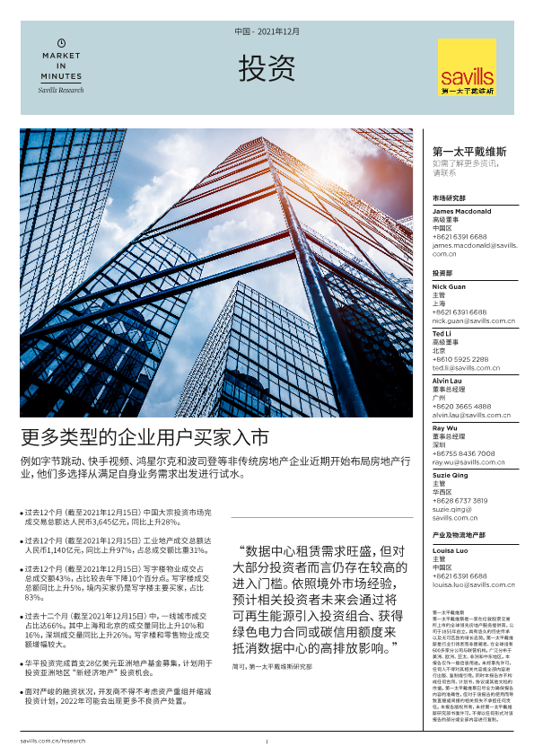 【第一太平戴维斯】【2021】2021年中国大宗投资市场回顾及展望-2页