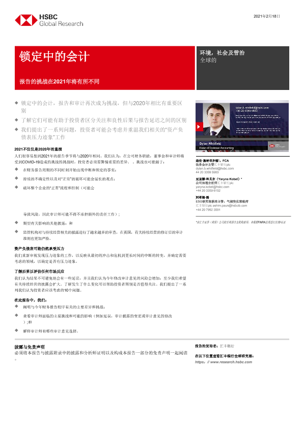 【HSBC】【20210218】全球投资策略封城下的会计:2021年的会计报告面临的挑战不同-23页