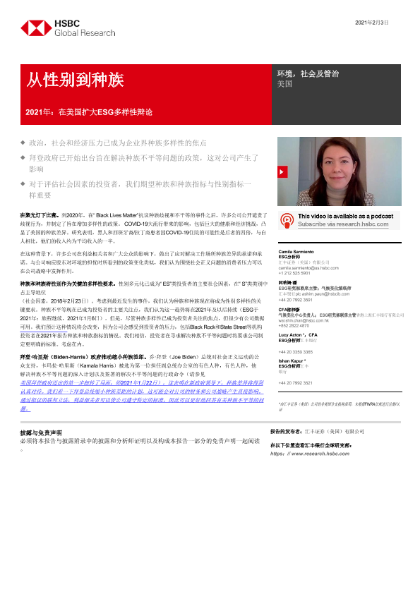 【HSBC】【20210203】美股投资策略之从性别到种族2021:扩大美国ESG多样性辩论-25页