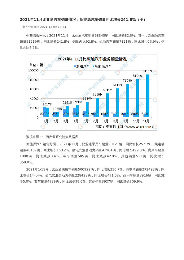 【中商产业研究院】【202112】2021年11月比亚迪汽车产销情况-2页