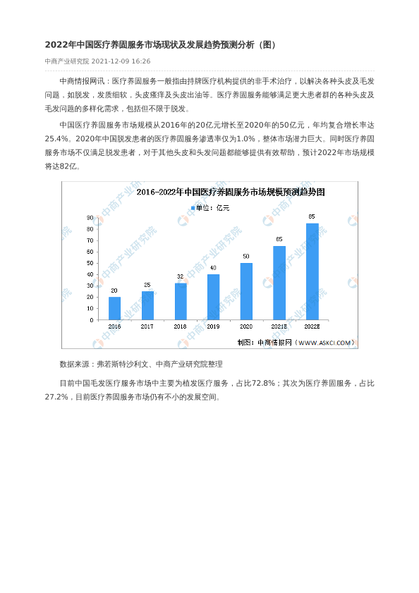 医疗养固服务 发展趋势 市场规模 毛发管理 民营医疗机构