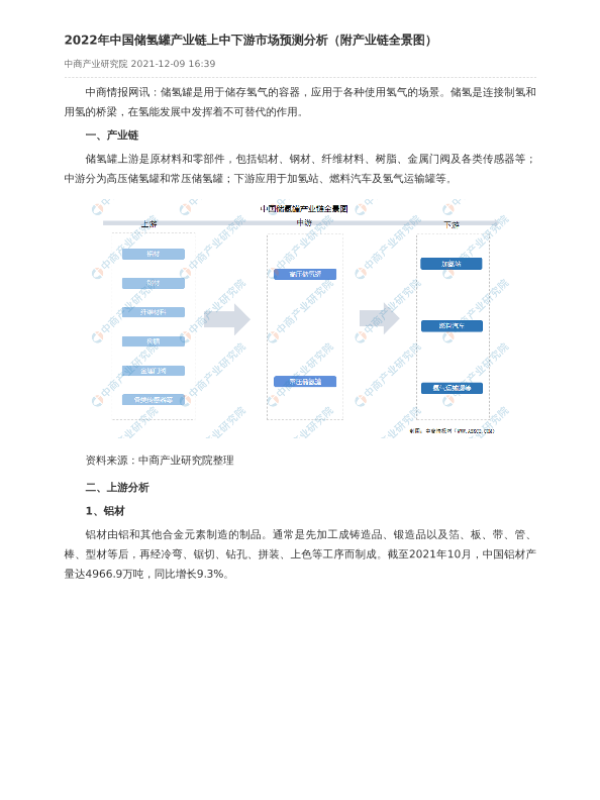 【中商产业研究院】【20211209】2022年中国储氢罐产业链上中下游市场预测分析-12页